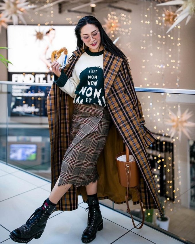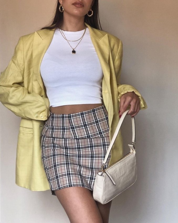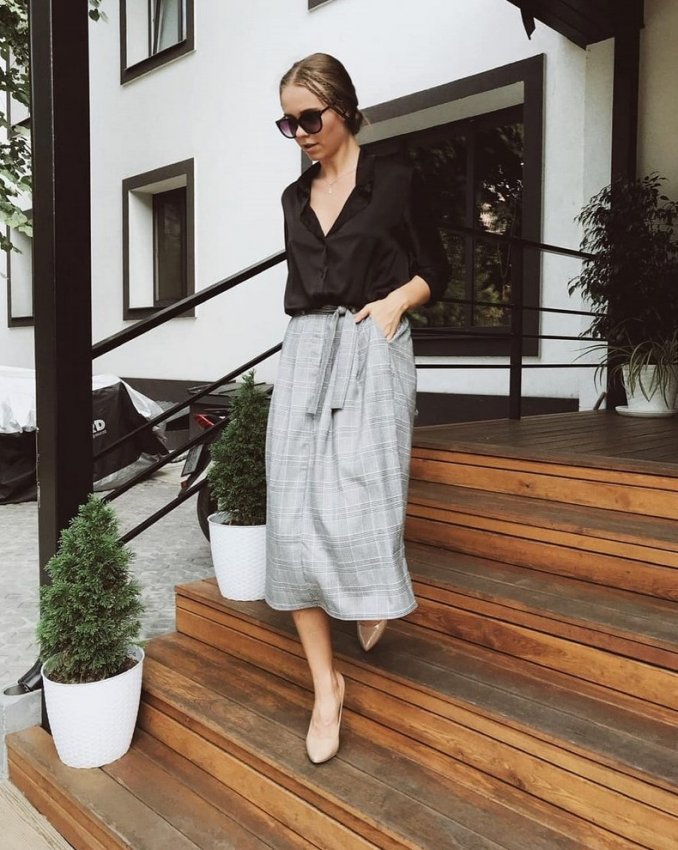 Юбка в клетку относится к предмету базового гардероба. Для создания лука с клетчатой юбкой воспользуйтесь легким «трюком», который заключается в следующем: выбирайте расцветку вещей в цветовой гамме клетчатого принта, таким образом наряд будет смотреться лаконично и гармонично.