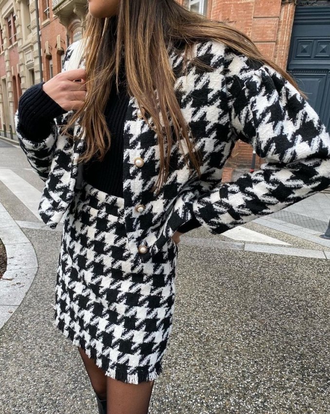 Модели юбок на запах уже давно завоевали сердца многих модниц. Красивый «прием» в виде запаха позволяет создавать нескучные и оригинальные образы с юбками, а клетчатый принт придает особый шик. Лучше всего модели на запах смотрятся на плотных тканях, которые держат форму. В то время как длина не имеет значения: коротки клетчатые модели с запахом смотрятся кокетливо, а миди – более лаконично. Бахрома не сдает своих позиций, и если некоторые новинки юбок этого сезона будет украшать бахрома с длинными полосами, то актуальные клетчатые модели дополнены короткой бахромой в виде нитей. Такой декор преимущественно будет предложен в твидовых моделях, а образ можно дополнить жакетом, создав стильный и завершенный лук.Одной из модных тенденций 2022-2023 является юбка-плиссе в клетку. Плиссированный крой никогда не выйдет из моды, а вкупе с принтом клетка, бесспорно, считается базовым элементом женского гардероба.Современные новинки демонстрируются в разной длине. Универсальным вариантом будет юбка миди, которая станет прекрасным дополнением к деловому или повседневному образу в элегантном стиле. Активным девушкам стоит обратить внимание на коротенькие вариации, которые можно сочетать с толстовками и кроссовками в стрит стайл образах, а также комбинировать с блузами или рубашками в повседневных аутфитах.