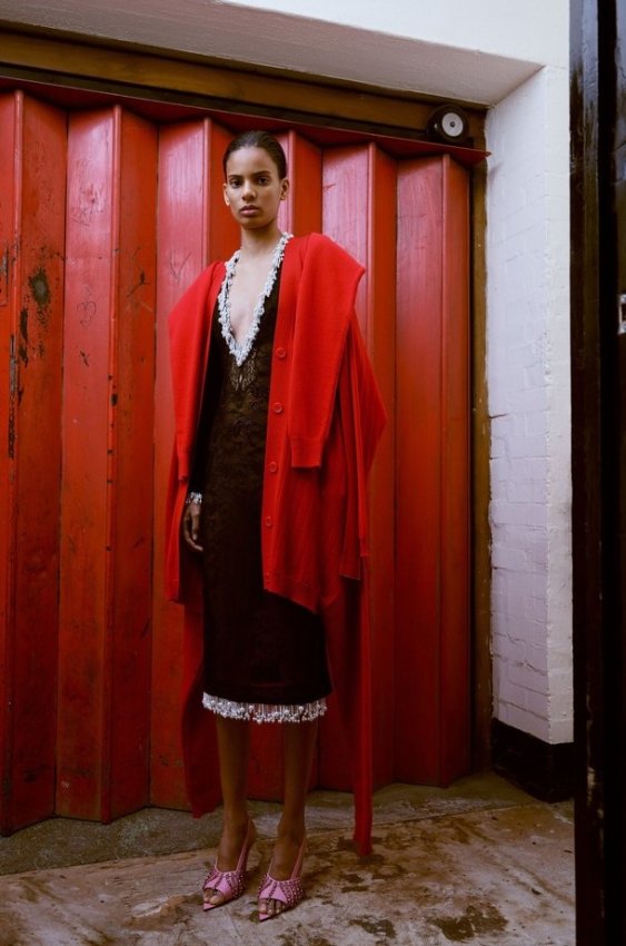 Еще один пример, как обыкновенный кардиган «приземляет» роскошные вещи — на этот раз платья. Данный стилевой прием можно испробовать на мини-платье в духе 1980-х или вечерних моделях в пол. Чувственная комбинация тоже подойдет, а если к ней и кардигану добавить еще и военные ботинки, то получится образцовый образ в стиле гранж.