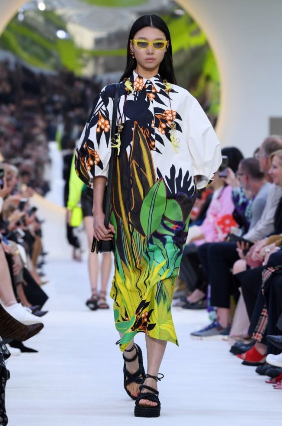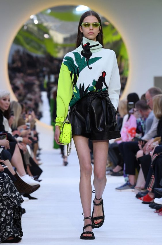 К слову, белоснежным образам, которых было не меньше десятка, ничуть не уступали интерпретации в ярких тонах: на подиуме появились летящие платья всевозможных флуоресцентных оттенков, блузы с принтом в виде обезьян и лиан, а также необычные и изящные украшения из «ломанного» золота.