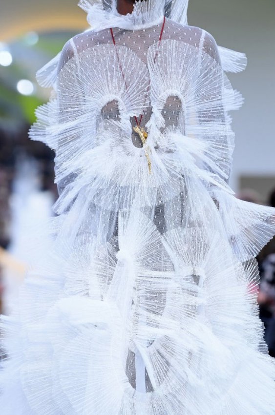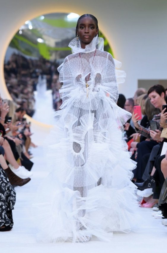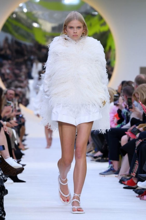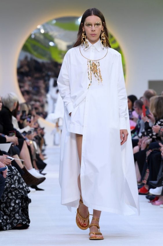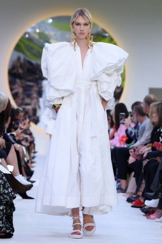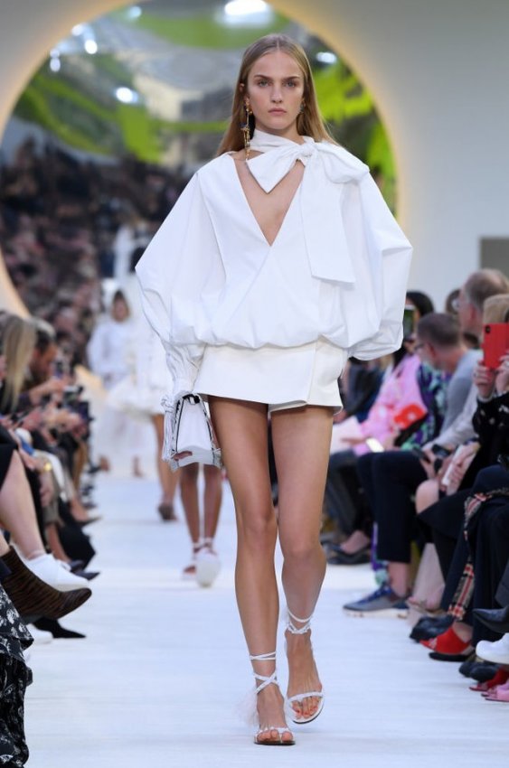 В парижском Дворце Инвалидов завершился показ Valentino — один из самых долгожданных и эффектных. В абсолютно белом пространстве гостей ждали неоново-зеленые лавочки, громадное зеркало в виде диска и небольшие карточки, в которых Пьерпаоло Пиччоли дал подсказку: в новом сезоне его вдохновил гризайль — особая техника рисования, при которой используется только один цвет. Этот вид живописи помогает лучше разглядеть форму и ощутить объем, которые выходят на первый план при отсутствии многообразия оттенков. Переосмыслив гризайль, дизайнер свел к сути белые рубашки, юбки и шорты, придав обычным вещам экстраординарности — это заставило пристально вглядываться в замысловатый крой самых привычных элементов гардероба.
