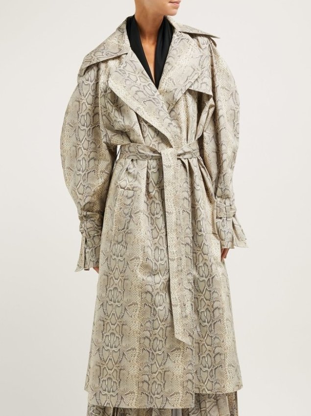 Также дизайнеры отформатировали палитру. Есть два беспроигрышных цвета для тренчкота — ослепительно-белый и неоновый. Еще приветствуются плащи в технике tie-dye, в змеиной расцветке и с платочным принтом. Главное правило при выборе — тренчкоты в новых коллекциях могут быть похожи на что угодно, но только не на классический песочный тренч!
