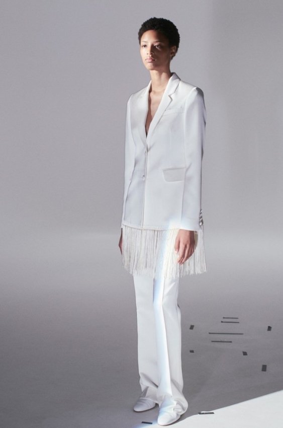 Как носить очень, очень протокольный комплект и не выглядеть заурядно? Наше предложение: выбирать вещи в белом цвете! В дополнение можно поэкспериментировать с фактурами: пусть юбка будет, например, плиссированной или из струящейся ткани, как в лукбуках Gabriela Hearst и Vince.