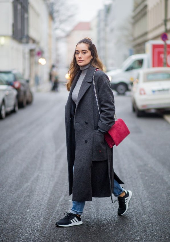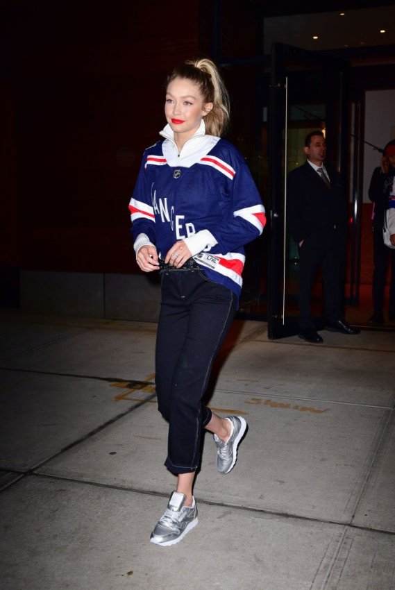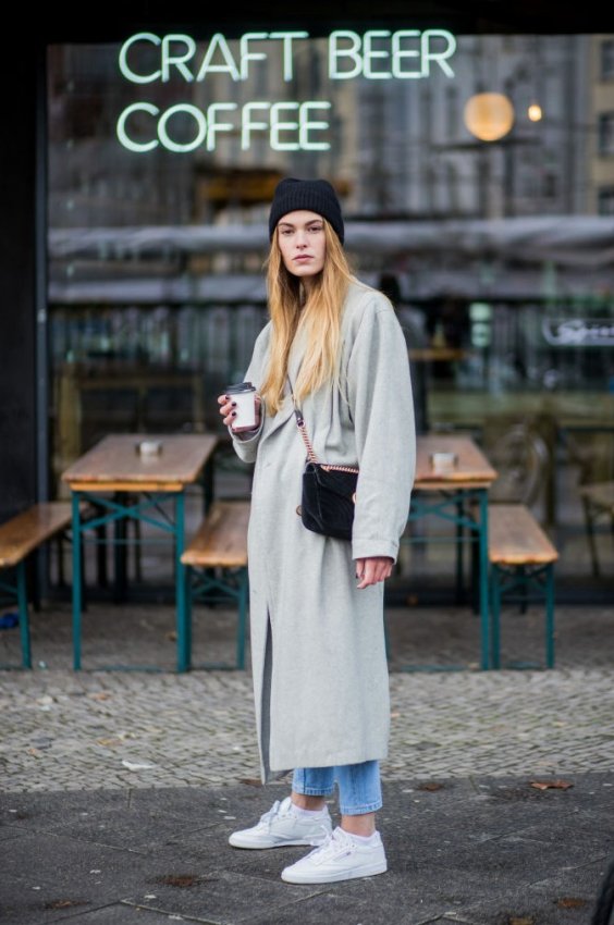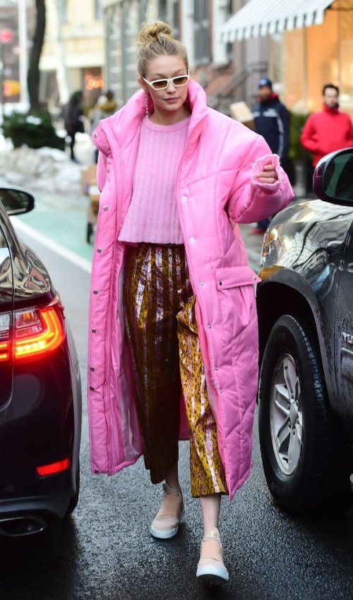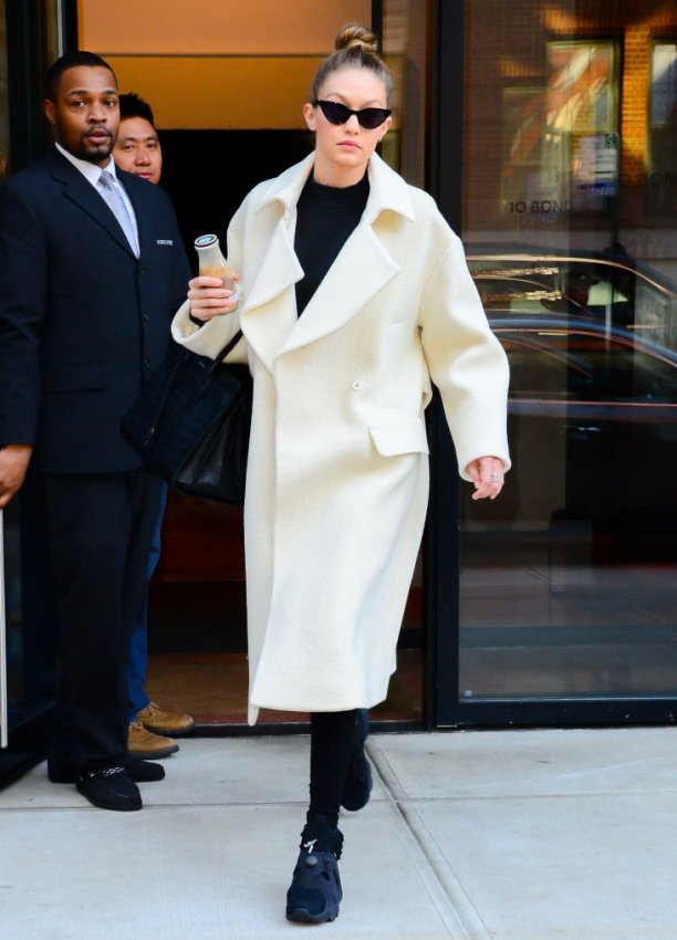 В межсезонье можно смело выбирать для прогулки объемный пуховик и кроссовки, как это делает Джиджи Хадид. Сочетание с пальто-коконом, плащом или тренчем – тоже отличный вариант на каждый день.