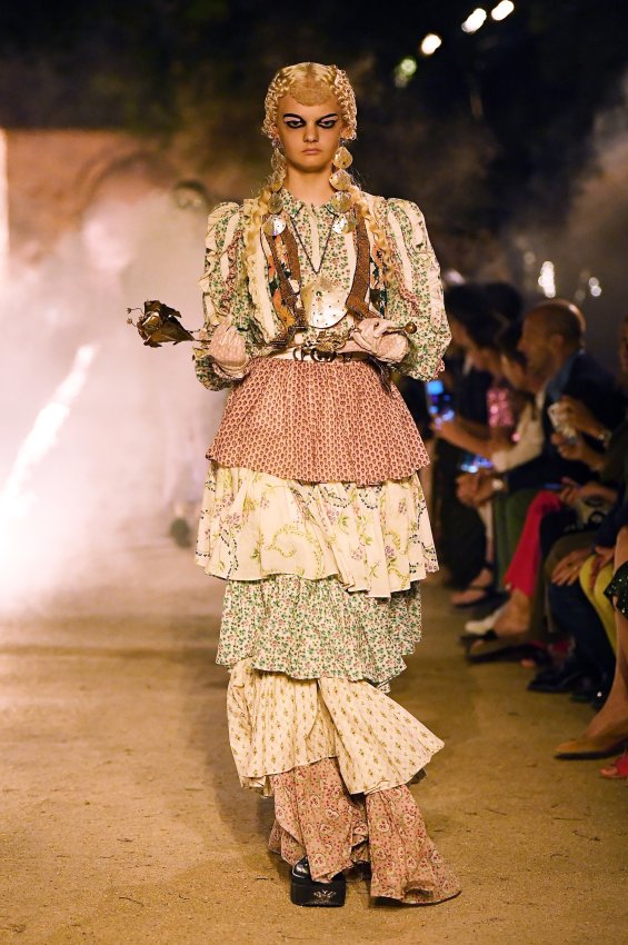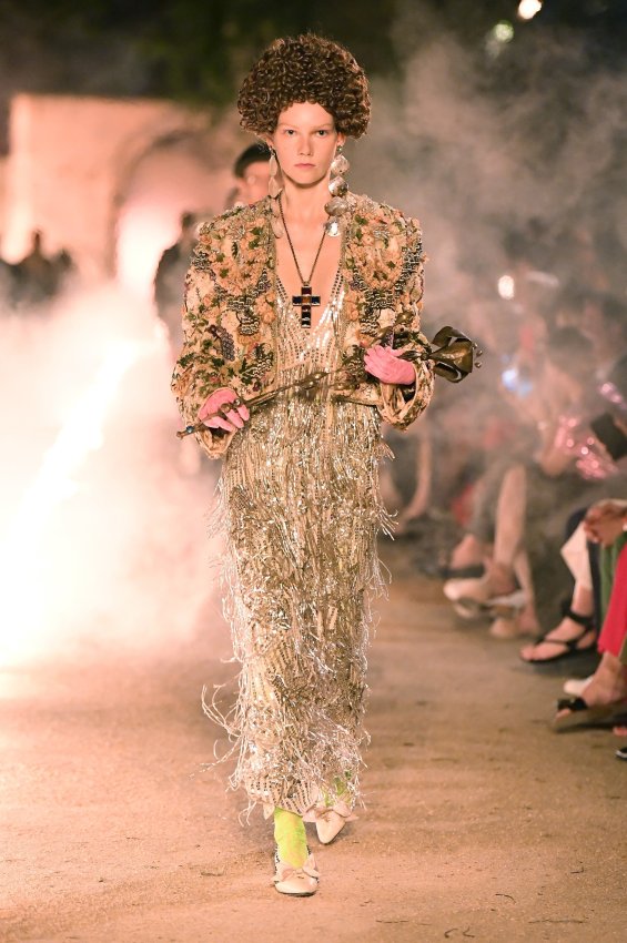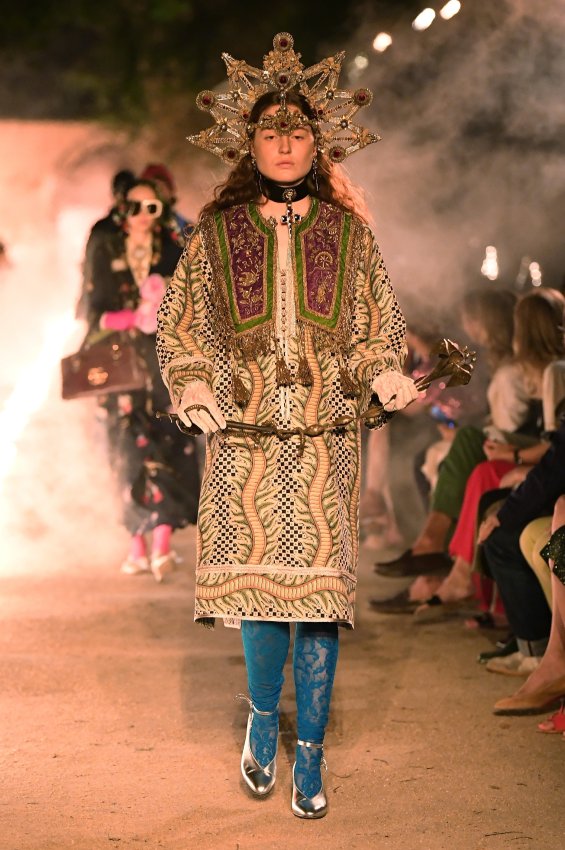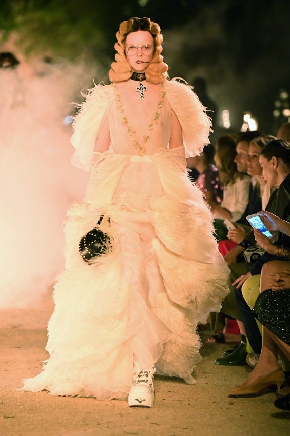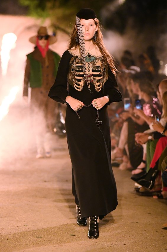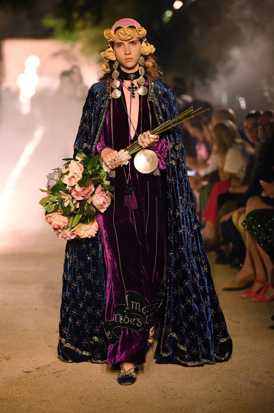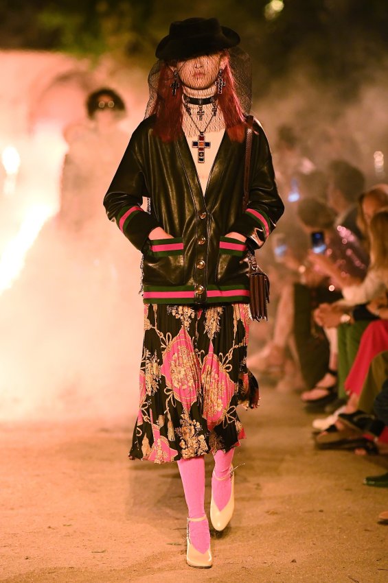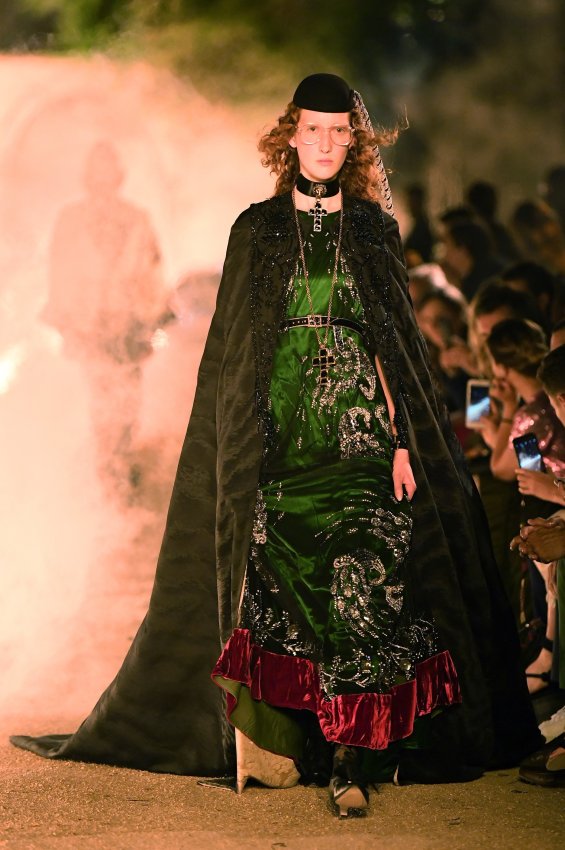 Похоже, тема Met Gala 2018 настолько понравилась Микеле, что он не смог ограничиться образами Джареда Лето и Ланы Дель Рей для красной дорожки. Креативный директор Gucci решил порассуждать на тему взаимоотношений религии и моды и в круизной коллекции. В некрополе Аликамп (который стал импровизированным подиумом) можно было бы снимать хоррор: показ начался после наступления темноты, повсюду на кладбище — свечи в старинных канделябрах, огненные полосы и туман.