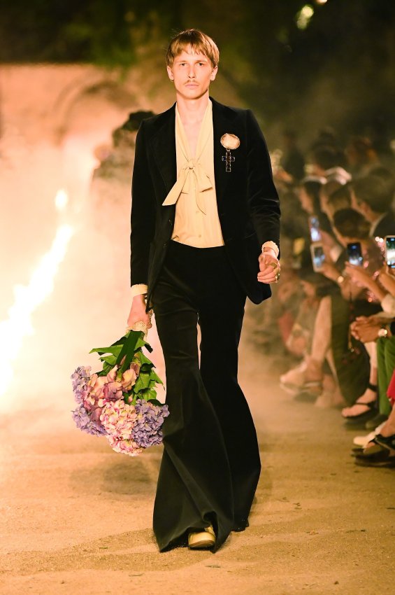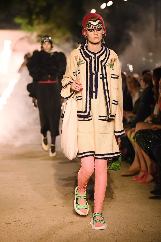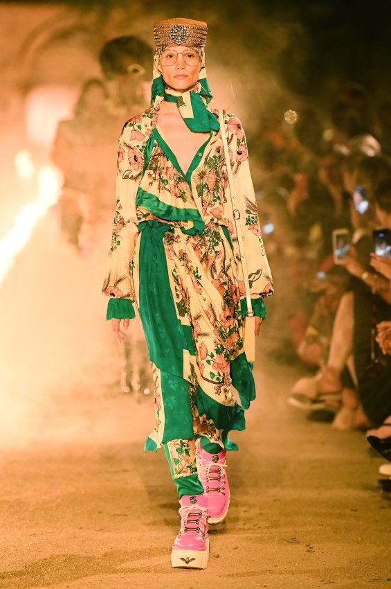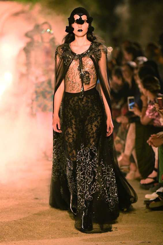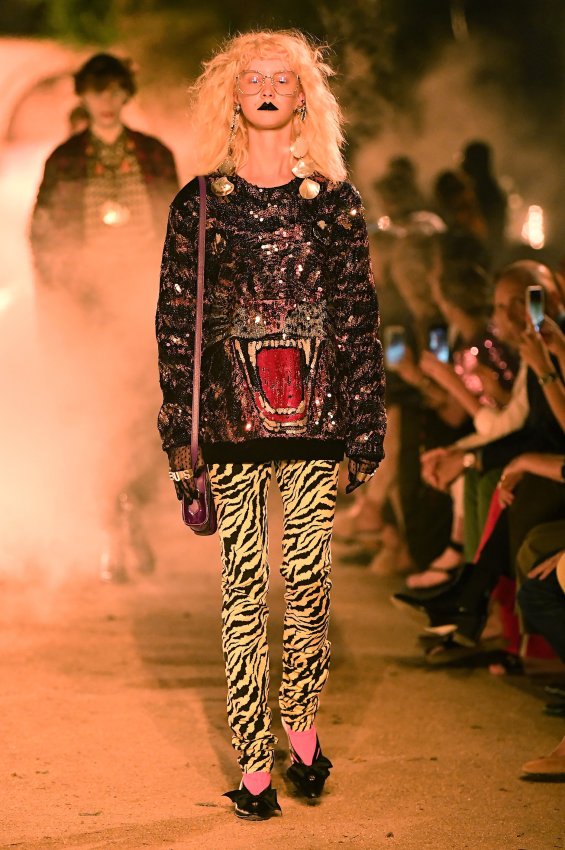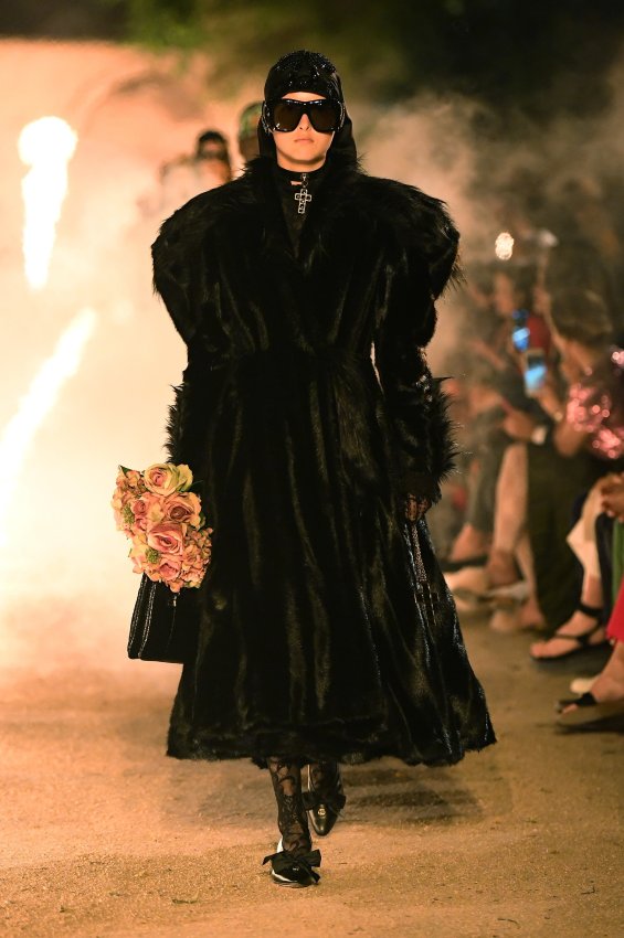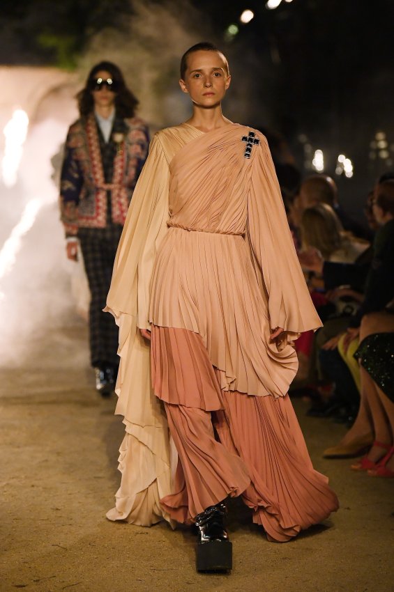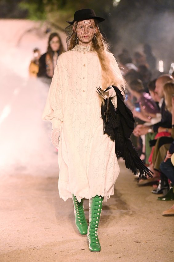 Похоже, тема Met Gala 2018 настолько понравилась Микеле, что он не смог ограничиться образами Джареда Лето и Ланы Дель Рей для красной дорожки. Креативный директор Gucci решил порассуждать на тему взаимоотношений религии и моды и в круизной коллекции. В некрополе Аликамп (который стал импровизированным подиумом) можно было бы снимать хоррор: показ начался после наступления темноты, повсюду на кладбище — свечи в старинных канделябрах, огненные полосы и туман.