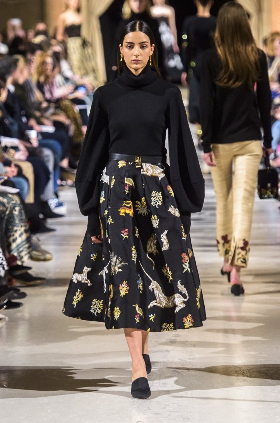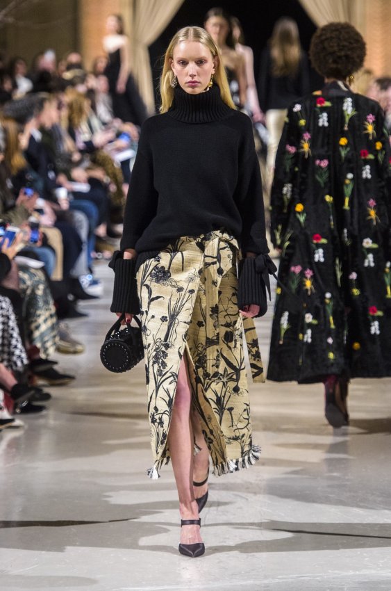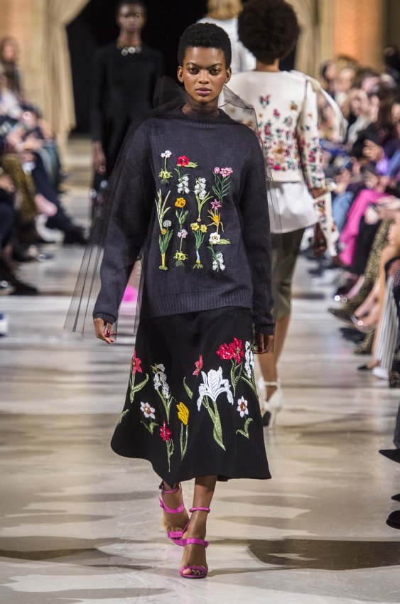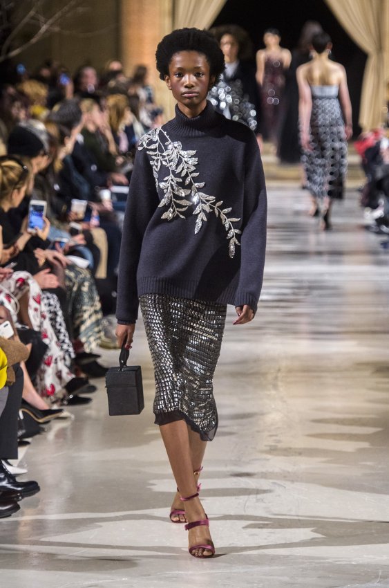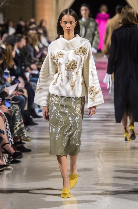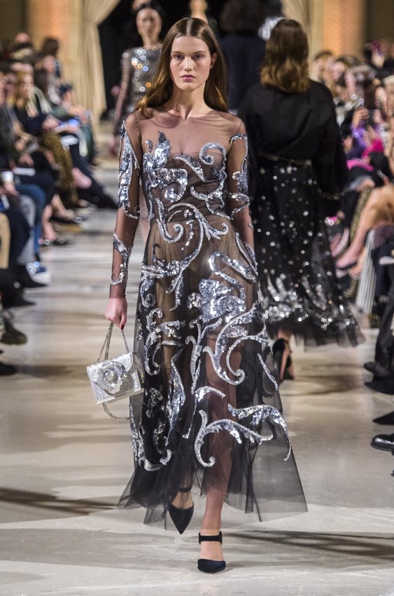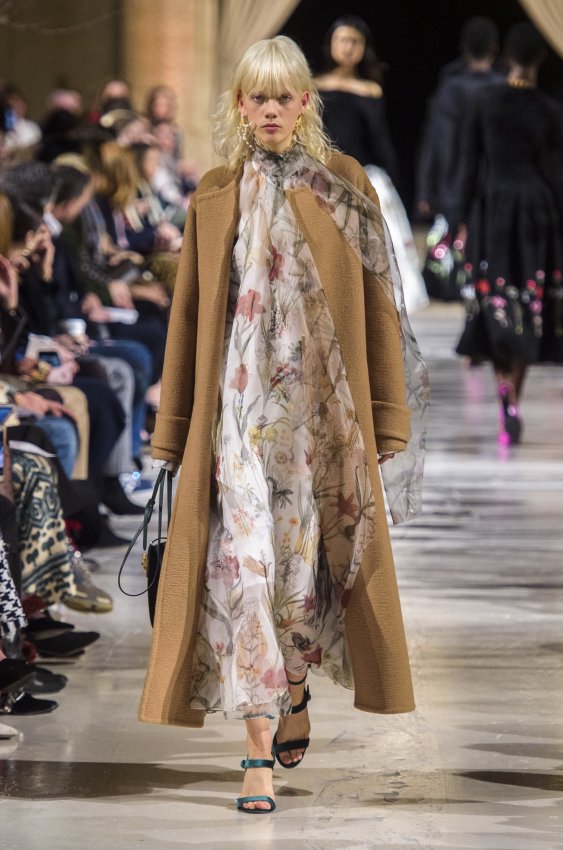 Его преемники, которые показывают уже третью коллекцию в новом качестве, делают ставку на узнаваемые силуэты Дома в современном прочтении. На этот раз, правда, с историческим подтекстом. Отсюда бархат, тюль и шелк в качестве главных материалов коллекции, а изысканная вышивка и растительные орнаменты, как на старинных гобеленах, — богатый декор каждого образа. Пышные юбки, топы с открытыми плечами, двубортные пальто, полупрозрачные платья с корсетным верхом, туники в пайетках — для завершения аутфита современной принцессы не хватает разве что короны, но роль главного аксессуара в этом сезоне взяли на себя клатчи-мидоньеры.