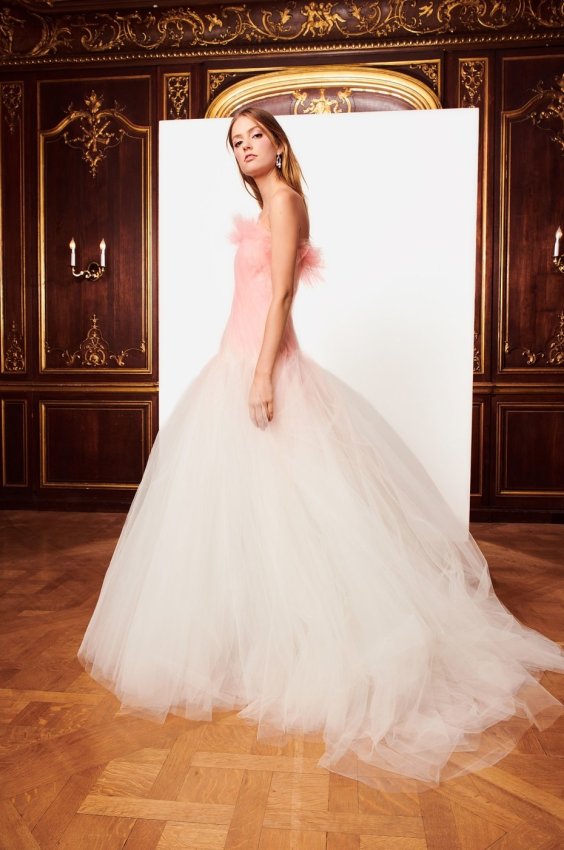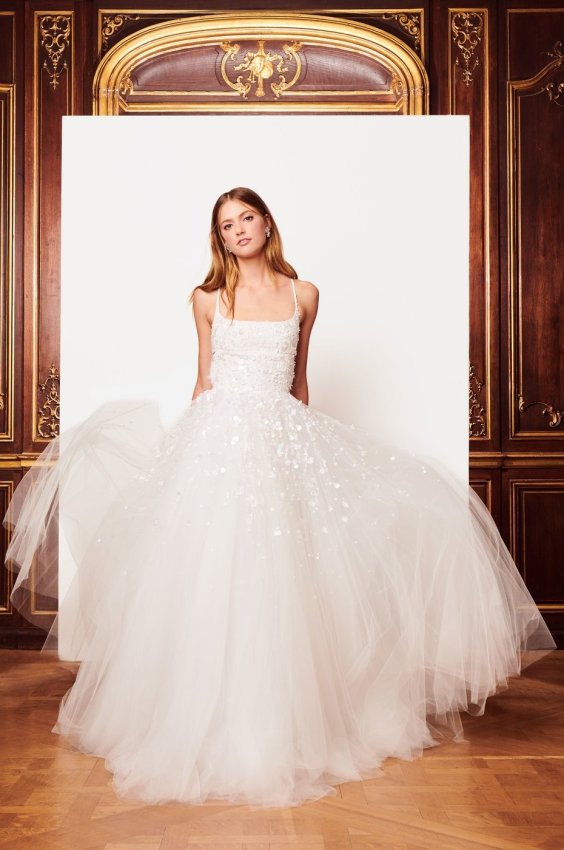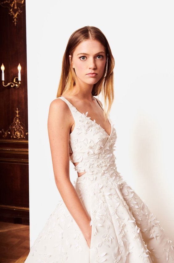 Стилистика дома Oscar de la Renta заметно омолодилась. Причиной этому стало назначение новых креативных директоров — Лауры Ким и Фернандо Гарсии. Молодые дизайнеры знают, чего хотят современные невесты: легкости, минимум декора, но при этом уважение к традициям. Эти три качества Ким и Гарсия и пытались донести новой свадебной коллекции. В нее вошли платья на тончайших бретельках и с завязками на спине, кружевные наряды и лаконичные костюмы с широкими брюками.