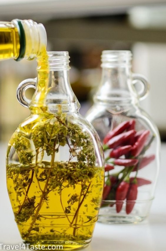 Пустая стеклянная бутылка, винная пробка, оливковое масло, немного декоративных веточек розмарина и капелька фантазии — и крутой дизайнерский подарок готов!