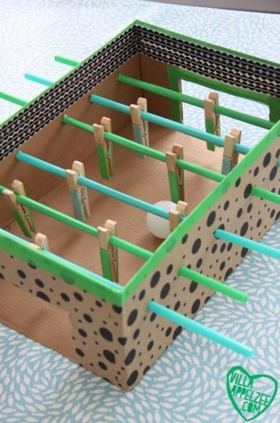 При большом бюджете можно, конечно, купить оригинальную или мини-версию настольного футбола. Но даже самодельная игрушка произведет настоящий фурор в веселой и сплоченной компании.