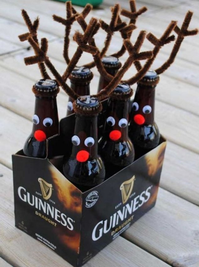 Любые бутылки можно с легкостью превратить в забавных рождественских оленей.
