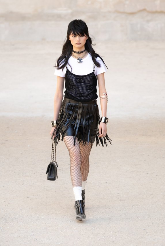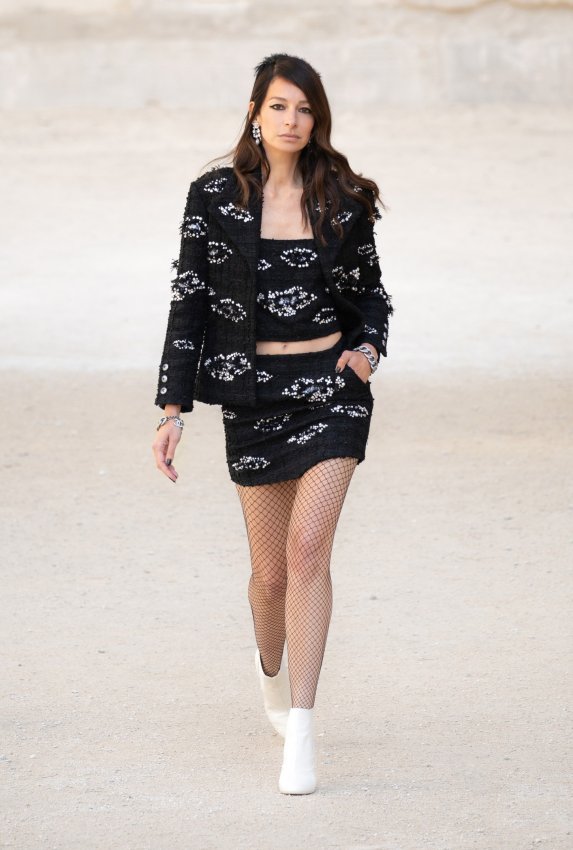 Проще, наверное, перечислить, каких образов в круизной коллекции 2021/2022 нет. Chanel Cruise стал «собранием сочинений» всех самых обсуждаемых тенденций и точно попадет в подборки стилистов и редакторов моды на тему бахромы, кожи, кроше, кроп-топов, комбинезонов из денима, сетки и, конечно, твида, из которого соткано ДНК бренда.