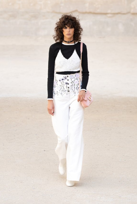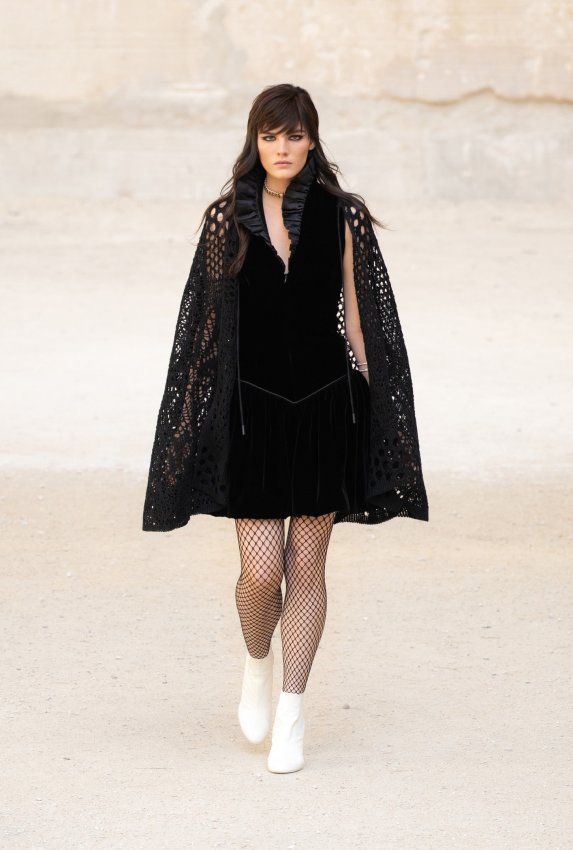 «Потому что Габриэль Шанель была близка Кокто, и я люблю фильм "Завещание Орфея". В частности, эта великолепная сцена: человек с головой черного коня спускается в Карьер де Люмьер, его силуэт вырезан на фоне белоснежных стен», — поясняет креативный директор Chanel Вирджини Виар.