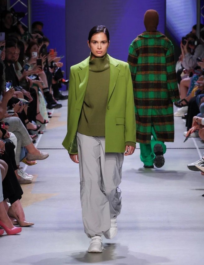 На основной площадке в парке «Зарядье» состоялся показ российского бренда STUDIO 29 — для марки это шоу стало дебютным. На подиуме были представлены 27 образов из новой осенне-зимней коллекции, куда вошли базовые, но при этом яркие вещи на каждый день: алые и оранжевые тотал-луки с длинными пальто и брючными костюмами, укороченные рубашки и свитеры, узкие юбки — миди и мини, — асимметричные топы на одно плечо, водолазки и стеганые куртки.