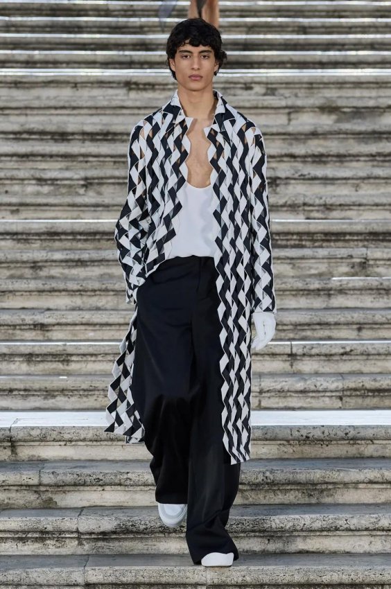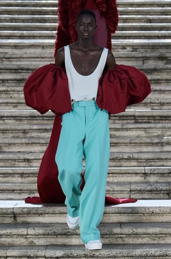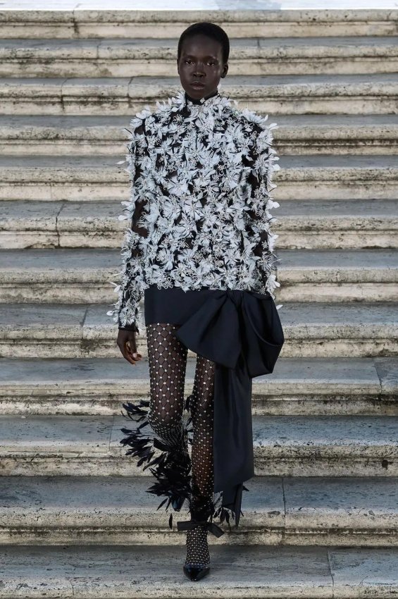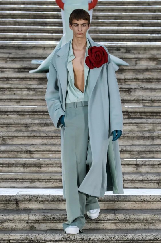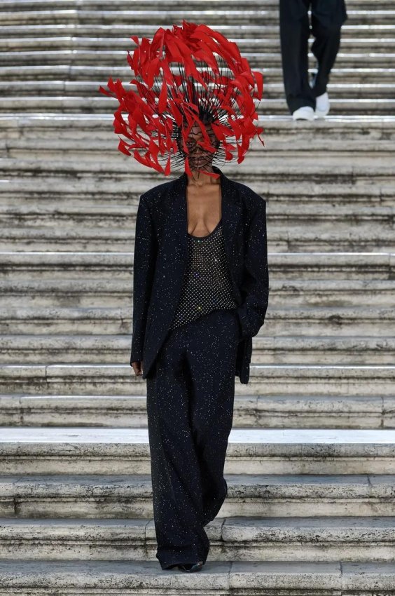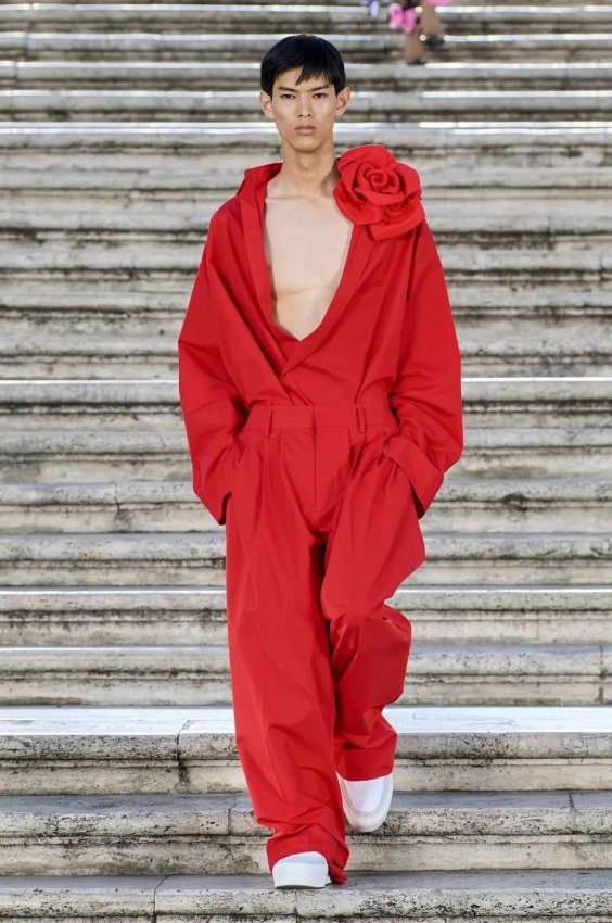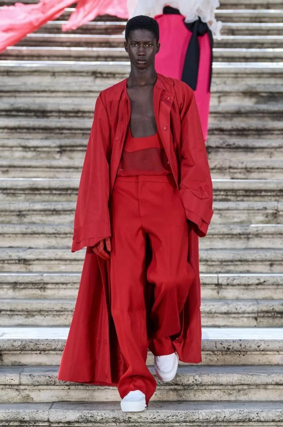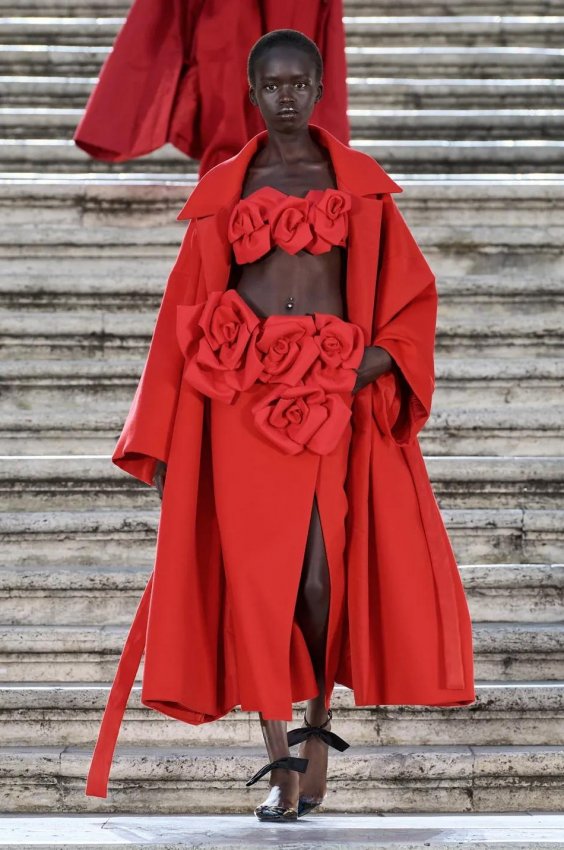 Прошлым вечером в Париже свою новую кутюрную коллекцию для Valentino представил Пьерпаоло Пиччоли — она получила название The Beginning. В этом сезоне дизайнер вновь активно работает с цветами: в прямом и переносном смысле. На подиуме мы увидели буйство ярких красок, а также отсылки к образам живых цветов: модели выходили на подиум в головных уборах-бутонах. Что касается оттенков, то тут Пиччоли показал богатую палитру, которая плавно сменялась вместе с настроением: в начале пышные платья, накидки и костюмы были окрашены в алый, затем появился уже фирменный розовый, который сменился на фиолетовый, кислотно-зелёный и оранжевый. «Отдыхом» от красок стали прозрачные платья и топы серебристого цвета: сияние — ещё один большой тренд коллекции.