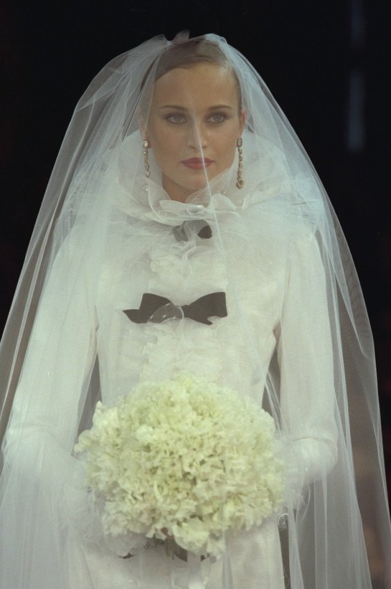 Показ осень-зима 1996/97 закрывала Клаудия Шиффер. В тот сезон дизайнер предложил невестам урбанистический вариант: черная шляпа с тюлем дополняла классическое парчовое платье. Знаковая модель стала воплощением французского шика.