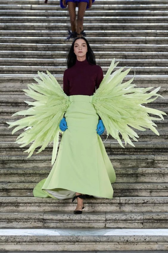 Прошлым вечером в Париже свою новую кутюрную коллекцию для Valentino представил Пьерпаоло Пиччоли — она получила название The Beginning. В этом сезоне дизайнер вновь активно работает с цветами: в прямом и переносном смысле. На подиуме мы увидели буйство ярких красок, а также отсылки к образам живых цветов: модели выходили на подиум в головных уборах-бутонах. Что касается оттенков, то тут Пиччоли показал богатую палитру, которая плавно сменялась вместе с настроением: в начале пышные платья, накидки и костюмы были окрашены в алый, затем появился уже фирменный розовый, который сменился на фиолетовый, кислотно-зелёный и оранжевый. «Отдыхом» от красок стали прозрачные платья и топы серебристого цвета: сияние — ещё один большой тренд коллекции.