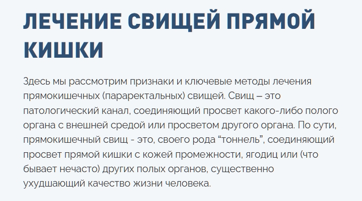 Данные свищи локализуются в поверхностных слоях тканей вокруг прямой кишки, не затрагивая глубокие структуры. Как правило, они вызывают меньше боли и поддаются лечению легче.
